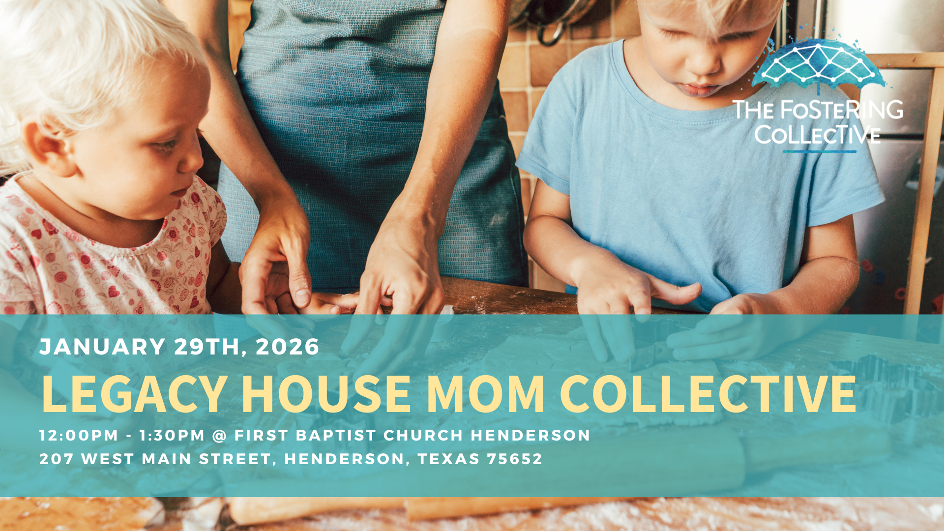 First Baptist Church - Henderson 207 W Main St, Henderson, Texas, United StatesAre you a mom who fosters, has adopted, or cares for children through kinship placement? Join us for our Legacy House Mom Collective Community Group in the Henderson area! This supportive group is a welcoming space to connect with other moms who share similar journeys, find encouragement, and build lasting community. Contact:Shana Moland at 903-646-7230 […]